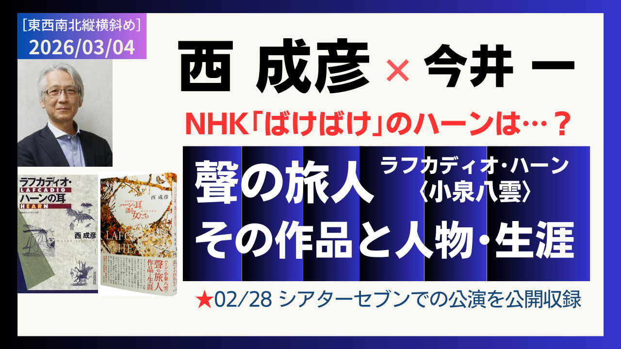 長年、ハーンについて研究し著作もある文学者の西成彦(立命館大名誉教授)さんに彼の作品と生涯について、深く正確に語っていただきます。この配信は2月28日にシアターセブンで公開収録したものを編集してお届けします。